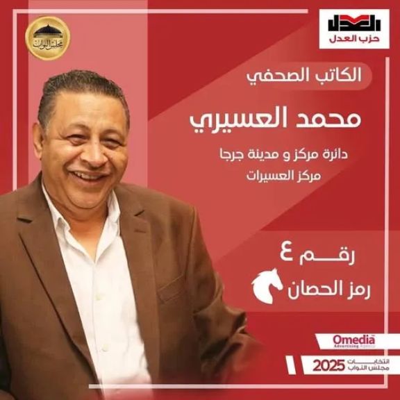 تقدم الكاتب الصحفي والإعلامي محمد العسيري، المرشح عن حزب العدل، بأوراق ترشحه لانتخابات مجلس النواب 2025، فردى، عن دائرة جرجا والعسيرات بسوهاج.